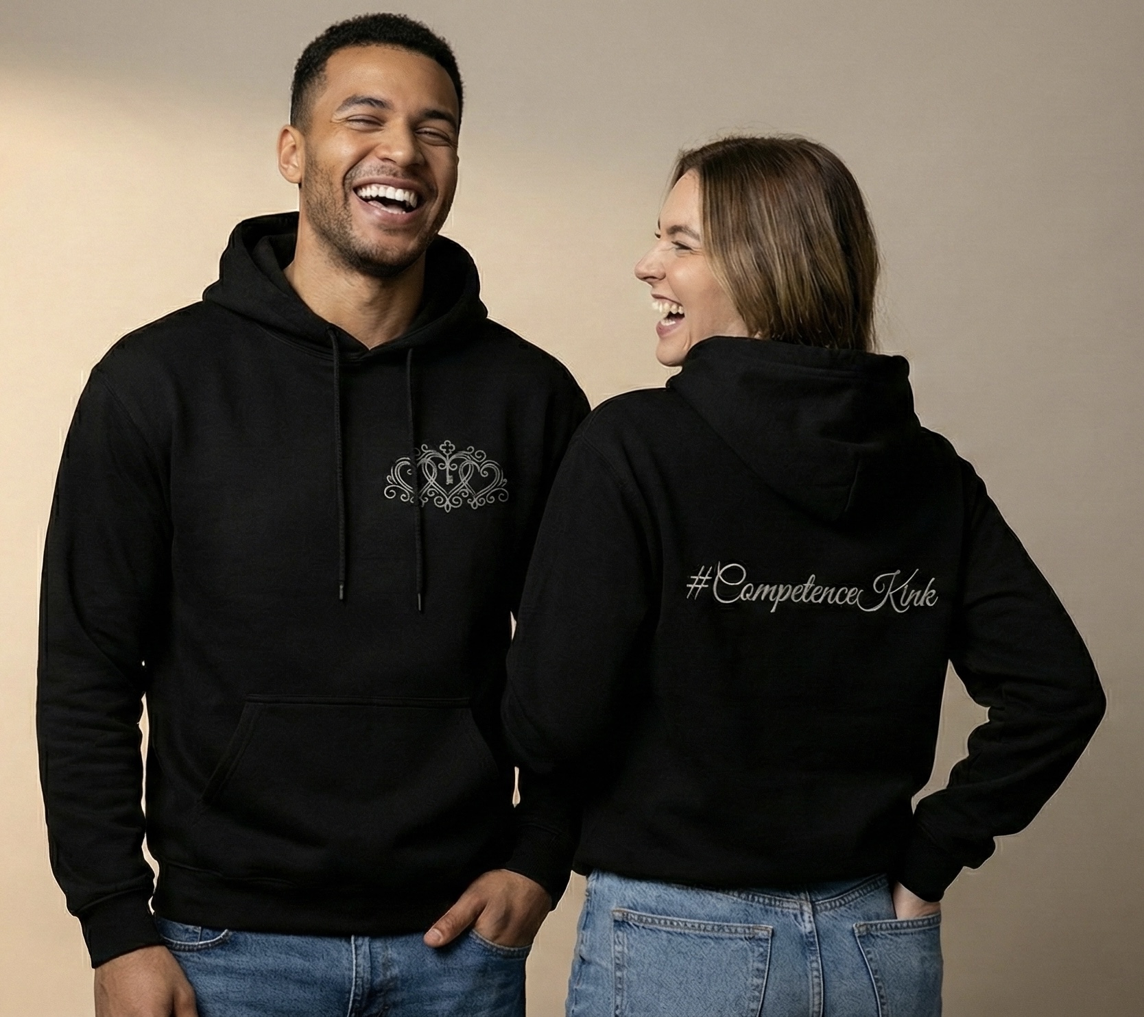 These are not cheap merch, they are premium quality, snuggly hoodies made from 320gsm soft-touch fabric (78% organic cotton/21% recycled polyester/1% viscose) and professionally embroidered with the GHT crest over your heart and #CompetenceKink on the back.